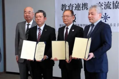 平成30年1月19日 半田市役所にて半田市教育委員会、愛知県立半田東高等学校及び日本福祉大学は、教育連携・交流恊定を締結しました。